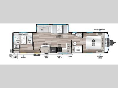 Sleeps 8 Slides 1 Length 38 ft 1 in Ext Width 8 ft Ext Height 11 ft 2 in Hitch Weight 935 lbs GVWR 11335 lbs Dry Weight 7788 lbs Cargo Capacity 3547 lbs Fresh Water Capacity 53 gals Grey Water Capacity 60 gals Black Water Capacity 30 gals Furnace BTU 35000 btu Number Of Bunks 1 Available Beds Queen Refrigerator Type 12V Residential Inspired Cooktop Burners 2 Number of Awnings 1 Water Heater Type On Demand Tankless AC BTU 15000 btu TV Info LED Smart TV Awning Info 21' Power Axle Count 2 Shower Type Standard Similar Travel Trailer Floorplans