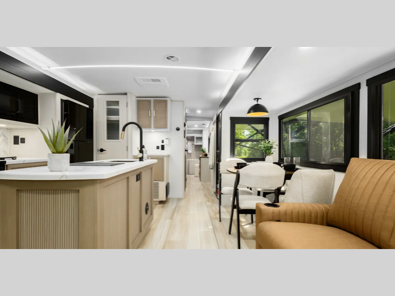Sleeps 5 Slides 3 Length 37 ft 11 in Ext Width 8 ft Ext Height 11 ft 2 in Hitch Weight 1405 lbs Dry Weight 9688 lbs Cargo Capacity 1917 lbs Fresh Water Capacity 57 gals Grey Water Capacity 90 gals Black Water Capacity 30 gals Available Beds Custom King Refrigerator Type 12V Refrigerator Size 10 cu ft Cooktop Burners 3 Number of Awnings 2 Water Heater Type On Demand Tankless AC BTU 31500 btu TV Info LR 50" LED Smart TV Awning Info 12' and 14' with LED Lights Axle Count 2 Washer/Dryer Available Yes Shower Type Standard Electrical Service 50 amp Similar Floorplans
