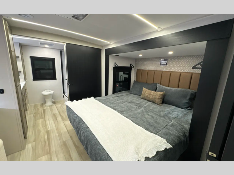 - Full-Profile Front Cap with HUGE Functional Wardrobe (378FL Uses Panoramic Windshield in-place-of Wardrobe)